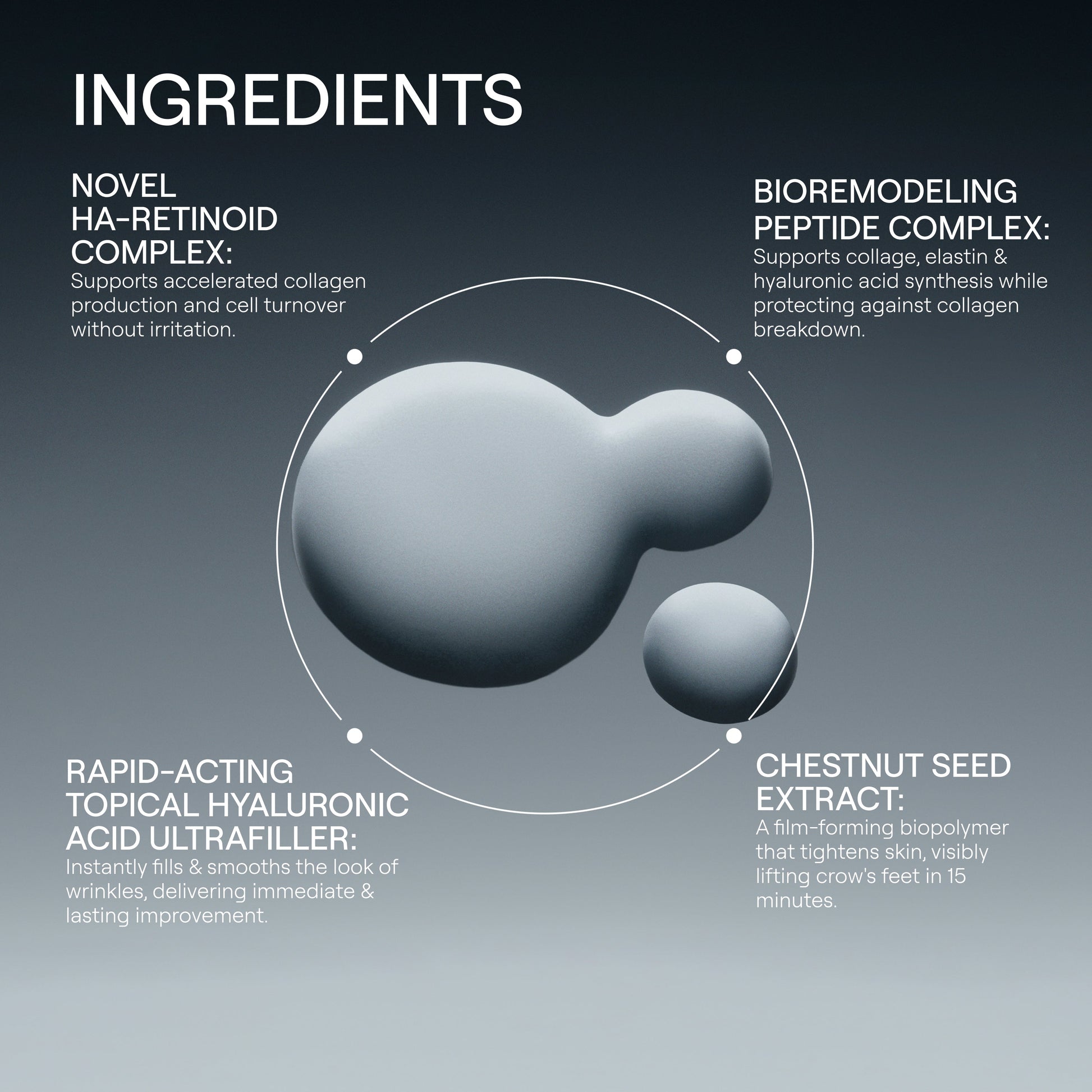 Formulated with novel Bioremodeling Peptide Complex, a next generation peptide system that includes bioengineered, human identical & growth factor derived peptides, EyeLift works in synergy with the skin's natural biology by supporting the production of key structural proteins while inhibiting the enzymes responsible for collagen breakdown, delivering a visibly lifted, firmer, and revitalized eye area with results visible immediately and over time.